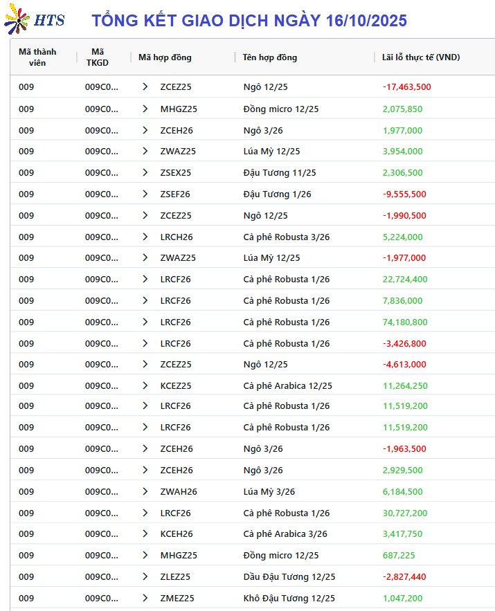 Tổng kết giao dịch ngày 15/10/2025 (16/10/2025)